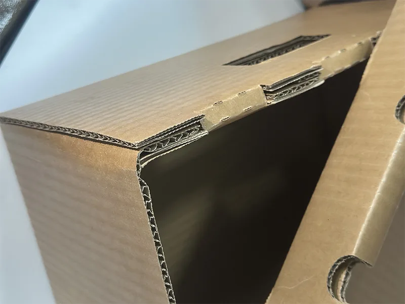 मोठ्या जलरोधक कोरुगेटेड कार्डबोर्ड बॉक्सची जलरोधक वैशिष्ट्ये नेहमी स्थिर लोड-असर क्षमता सुनिश्चित करतात. पारंपारिक मोठ्या पुठ्ठ्याचे बॉक्स आर्द्र वातावरणात (७०% -९०% आर्द्रता) आर्द्रता शोषून घेतात आणि मऊ होण्याची शक्यता असते आणि त्यांची लोड-असर क्षमता २४ तासांच्या आत ५०% पेक्षा जास्त कमी होऊ शकते. दुसरीकडे, जलरोधक कोरुगेटेड कार्डबोर्ड बॉक्स, ओलावा प्रवेश रोखण्यासाठी संयुक्त पीई फिल्म वापरतात. जरी एक महिन्यासाठी आर्द्र वातावरणात साठवले गेले तरीही, लोड-बेअरिंग ॲटेन्युएशन अजूनही 8% पेक्षा कमी आहे, ओलावामुळे होणारे लोड-बेअरिंग बिघाड टाळून आणि लांब-अंतराच्या वाहतुकीच्या लोड-बेअरिंग गरजा आणि मोठ्या उत्पादनांच्या दीर्घकालीन स्टोरेजची पूर्तता होते.